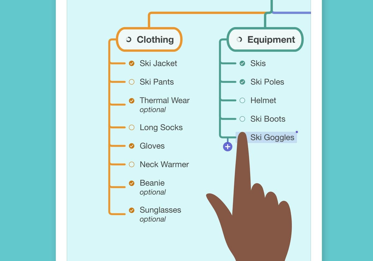 Switch between your finger, pointer, or pencil when making mind maps on your iPad. Whatever works for you.
