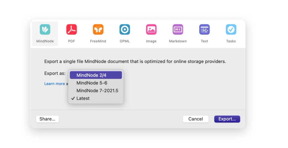 On iOS, it is also possible to set the legacy file format as a default in the MindNode settings. To enable that: