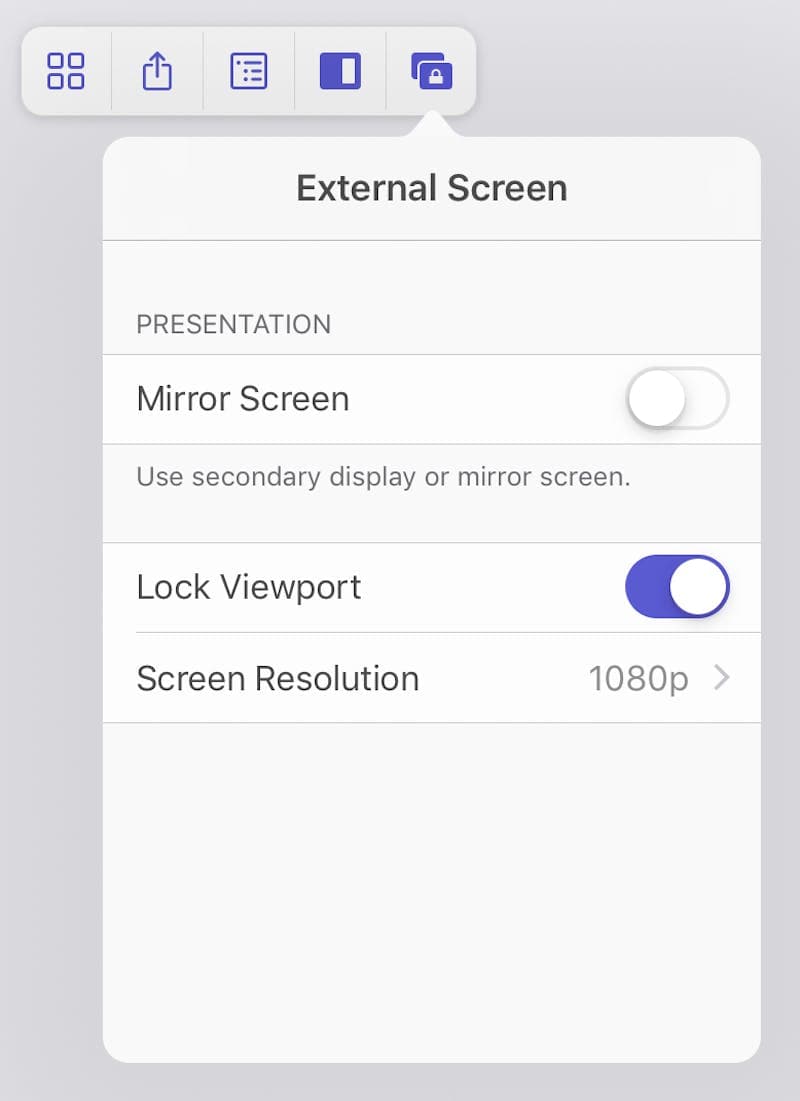 Big ideas need space, and with an external screen, you get a different perspective on your ideas. Using the feature "Lock Viewport" in the settings, you can lock the zoom and scroll position on your external screen to always keep one part of your document in view. You're now also able to use Quick Look to view images and configure the resolution of connected displays.