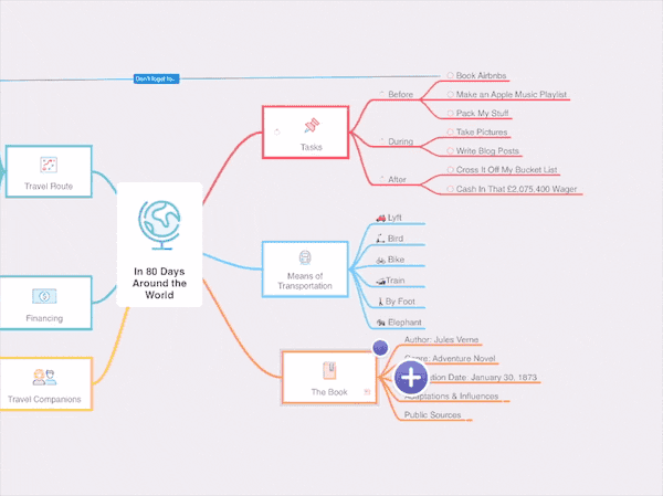 Our brand-new Focus Mode puts a spotlight on one part of your mind map and fades out all the rest. It minimizes distractions and - at the same time - ensures you don’t lose context. The path to the main node is always visible, and when you zoom out, surrounding nodes will slowly fade in. This unique perspective enables you to easily refocus on a single area of your idea.
