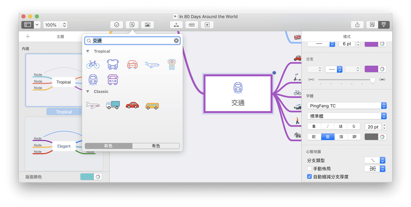 MindNode is now fully localized to Traditional Chinese. With this addition, we now support 14 different localizations: Arabic, Chinese (Simplified), Chinese (Traditional), Dutch, English (US), French, German, Italian, Japanese, Korean, Portuguese (Brazil), Russian, Spanish (Spain), and Swedish.