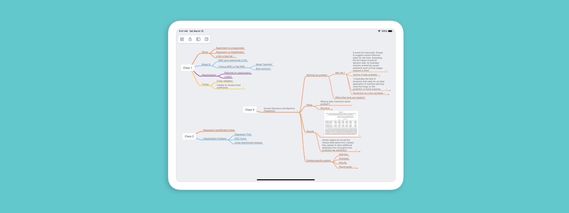 MindNode is the app that I use to begin the process of developing new classes. When staring down the barrel of a new class session, there is a seemingly infinite number of paths I could go down - huge numbers of topics, examples, and in-class exercises that could conceivably be incorporated into the class. MindNode helps me turn this complexity into a plan. I can group ideas into categories, which then link to one another in ways that gradually emerge as a class plan.