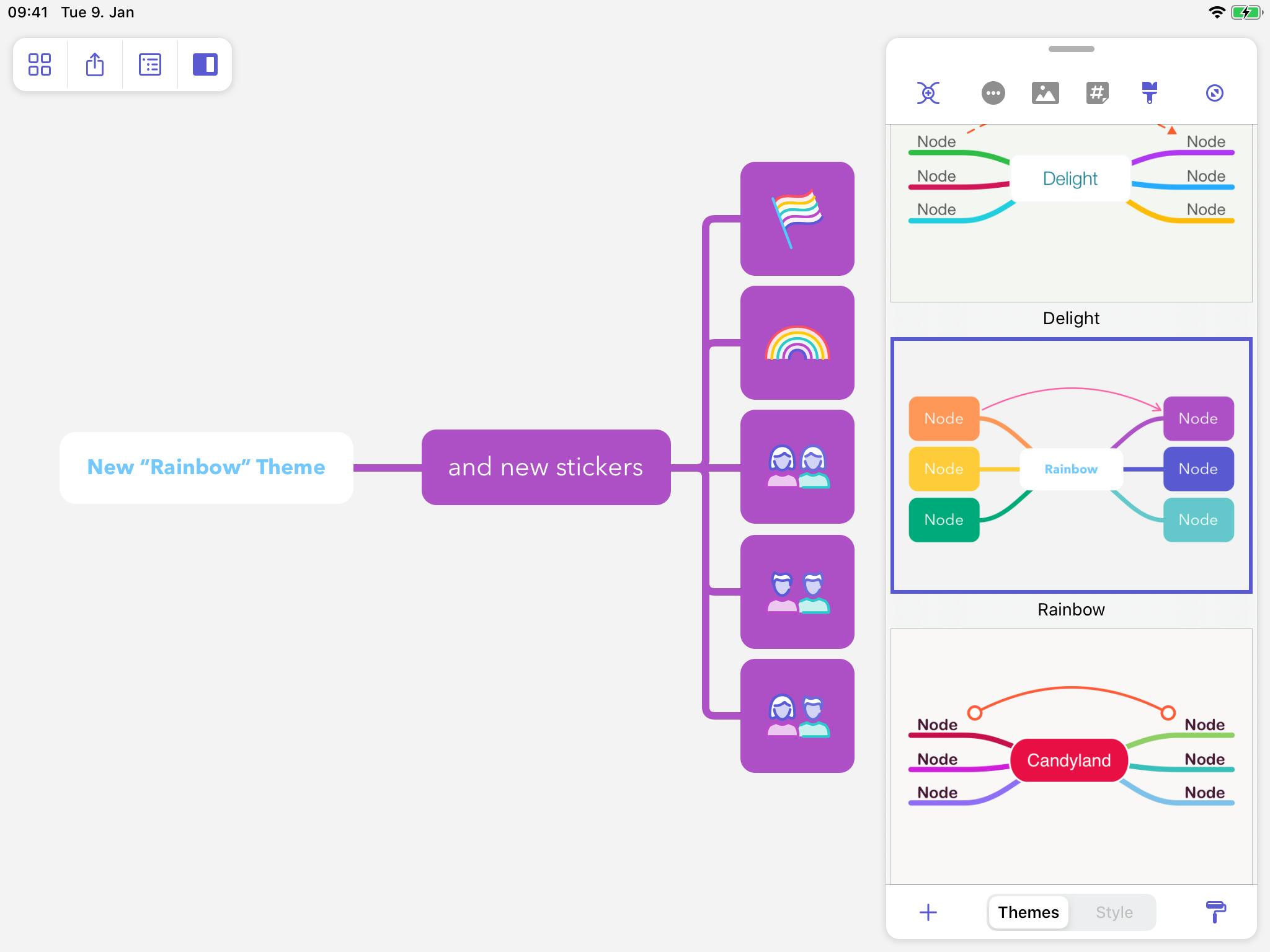 Personalize your mind map with a fresh batch of stickers and a new theme.