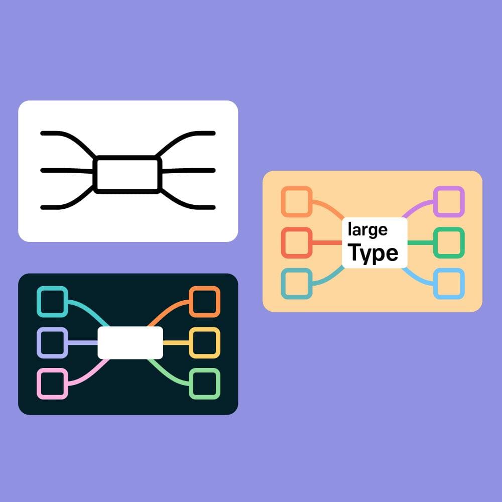 Make MindNode work for you with one of three downloadable themes: Black & White, High Contrast and Large Type. Lots of our built-in themes are also optimized for color contrast.