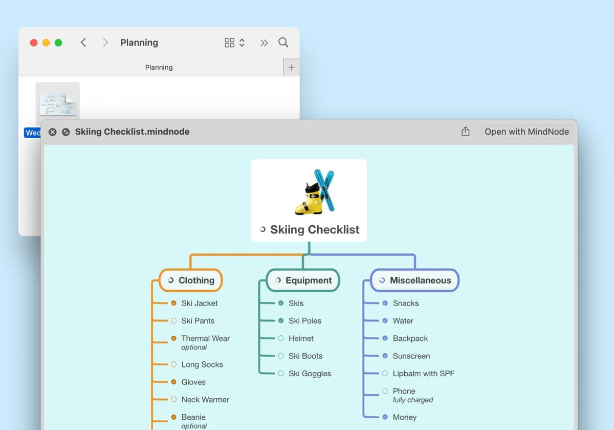 No need to trawl through endless documents. Use Spotlight to search and preview the content of your MindNode documents without even launching the app.