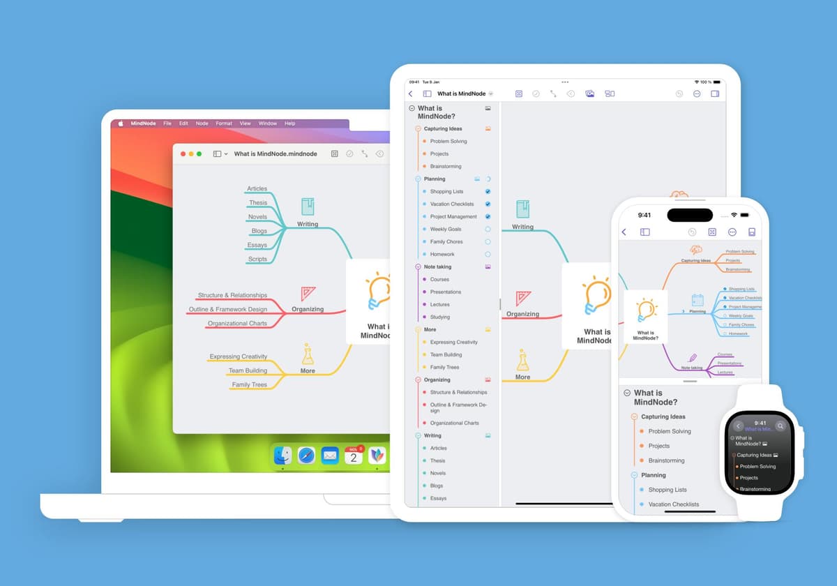 Working on a Mac, iPhone, iPad, or Apple Vision Pro? MindNode is built to fit seamlessly with Apple’s operating systems, giving you a user experience that’s smoother than silk.
