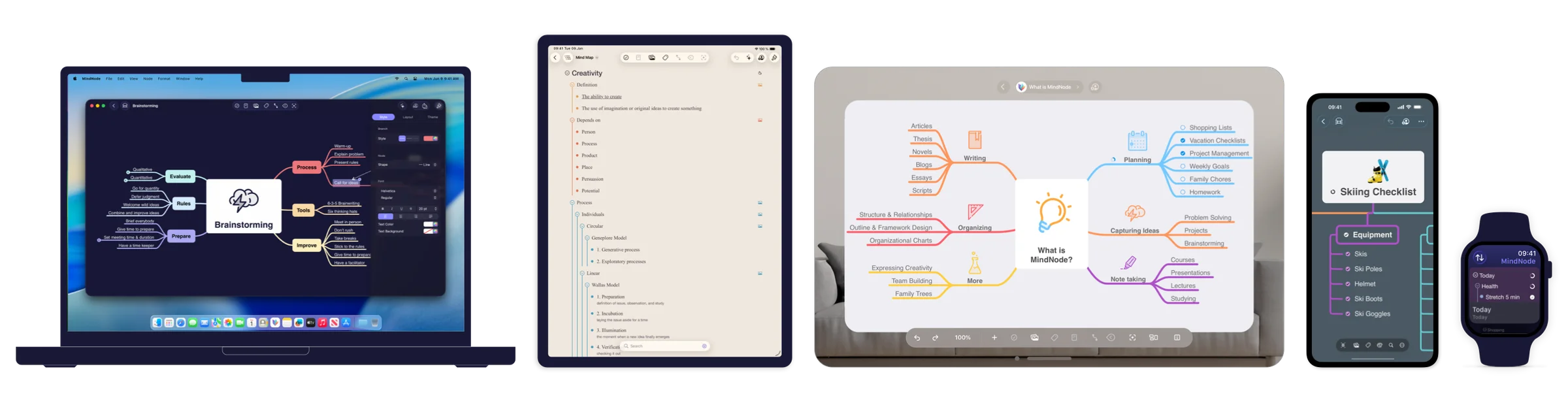 MindNode is lovingly crafted for macOS, iOS, iPadOS, watchOS, and visionOS — fitting seamlessly into Apple's ecosystem.